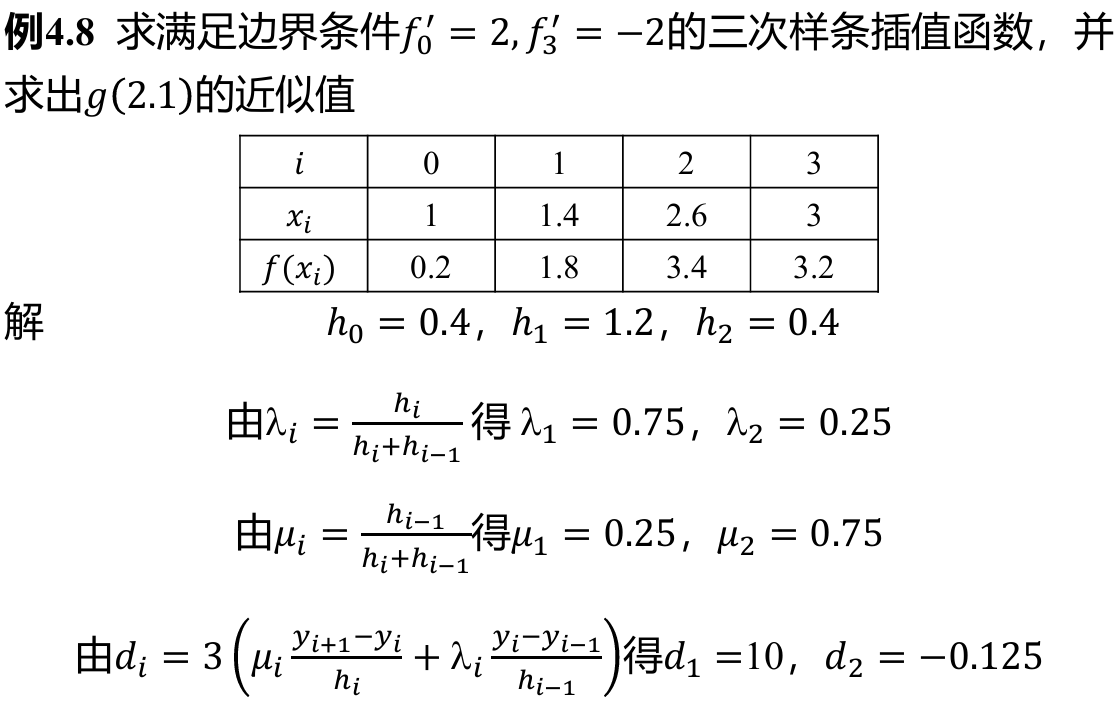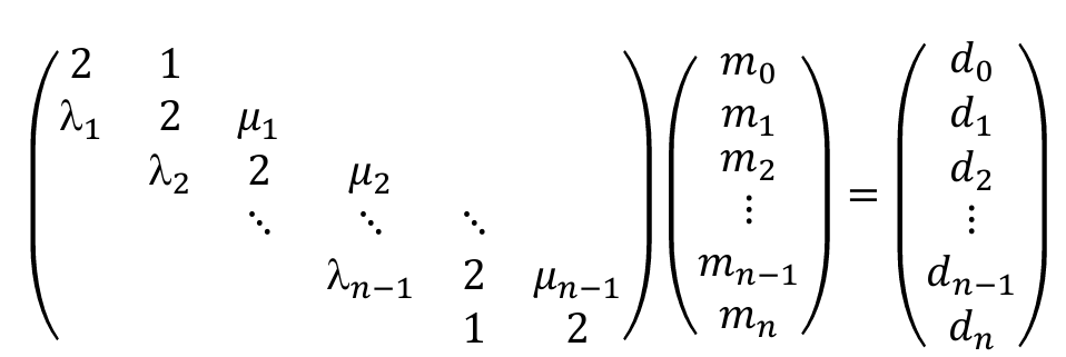 - 求 \(\pmb{d_i=3(\mu_i\frac{y_{i+1}-y_i}{h_i}+\lambda_i\frac{y_i-y_{i-1}}{h_{i-1}})}, \qquad i=1,\dots,n-1\)